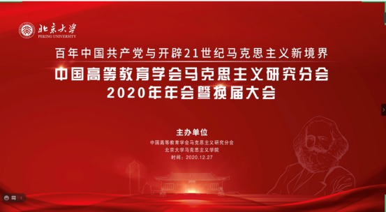2020年12月27日,百年中国共产党与开辟21世纪马克思主义新境界中国高等教育学会马克思主义研究分会2020年年会暨换届大会在北京大学中关新园召开。中国高等教育学会副会长、教育部原副部长林蕙青出席会议并讲话。北京大学党委书记邱水平致开幕辞。中组部前部长张全景致贺信。教育部原副部长朱新均,中国政治学会会长、中国社科院原副经理李慎明,北京大学党委常务副书记于鸿君,党委副书记安钰峰,中国高等教育学会马克思主义研究分会首任会长、教育部社科中心原主任田心铭,中国政治经济学会会长、中国社科院学部委员程恩富,《求是》杂志社原副总编、中国红色文化研究会会长刘润为,《思想理论教育导刊》资深编审任大奎,北京大学太阳成集团122ccvip教授仝华,中国高等教育学会马克思主义研究分会第四届理事会理事长、中国人民大学太阳成集团122ccvip原经理郝立新等三十多位领导、专家和学者线下出席会议。全国多所高校太阳成集团122ccvip经理、专家和学者二百余人通过视频连线出席会议。