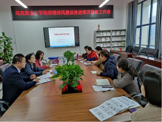2021年11月17日上午,在太阳成集团122ccvip纪委办主任彭巧云带领下,刘博艺,刘赞一行三人在雨母校区崇德楼406开展太阳成集团122ccvip师德师风建设推进情况督查工作。会议由公司党总支书记何小英主持,副经理张峰林,副经理周江平及各位党支部书记参加了此次会议。