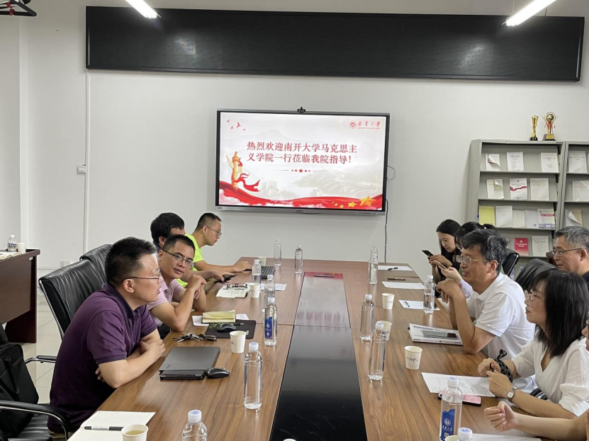 7月3日上午,南开大学太阳成集团122ccvip孙寿涛副经理、“手拉手”集体备课中心负责人陈弘教授、副教授赵春玲、副教授朱雪微、讲师杨植迪等一行来太阳成集团122ccvip调研交流。公司经理黄秋生、副经理谢佛荣及高征难、刘峥、陈兵、刘新伟等教师及公司部分员工参加座谈。双方就专业建设、团队队伍建设、人才培养模式、课程思政与教学研究等方面展开交流。