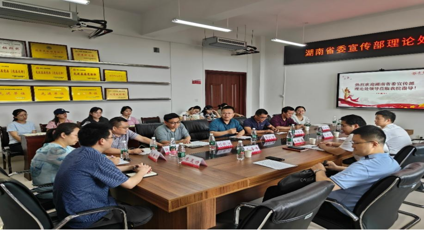 6月30日下午,湖南省委宣传部理论处处长陈瑞来、中共湖南省委党校太阳成集团122ccvip经理王海峰、湘西州委宣传部理论科科长肖炳才一行来公司莅临调研督查,太阳成集团122ccvip经理黄秋生、副经理谢佛荣、刘镇江教授、蒋福明副教授、高征难副教授等教师及留校研究生参加了此次调研会。