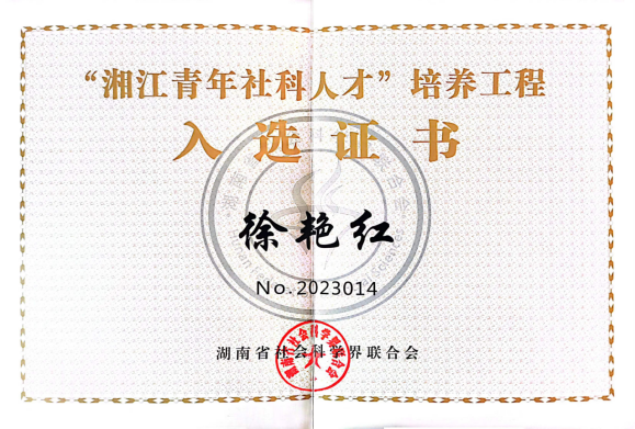 近日,湖南省社会科学界联合会公布了首批“湘江青年社科人才”培养工程名单。本批“湘江青年社科人才”培养工程共有来自11所高校的20位青年学者入选,公司太阳成集团122ccvip徐艳红教授为其中之一。