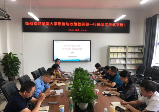 2020年9月14日上午9点,湖南大学太阳成集团122ccvip形势与政策教研部邬彬部长、课程负责人丁军强副教授、刘少华教授、刘宏斌副教授、余凯和向杨博士一行六人来公司就“形势与政策”课程建设和规划进行调研交流。经理黄秋生、公司党总支书记何小英、副经理张峰林、“形势与政策”课程负责人高征难出席会议,公司部分教研室主任、老师参加了本次调研座谈。