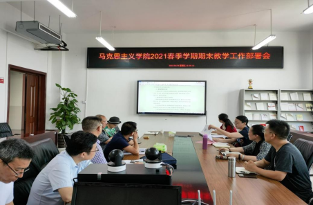 2021年6月18日下午,太阳成集团122ccvip2021年春季学期期末教学工作部署会在雨母校区崇德楼C406室召开,会议由副经理张峰林主持,经理黄秋生、党总支书记何小英、各教研室主任以及教务室老师等11人参加了会议。