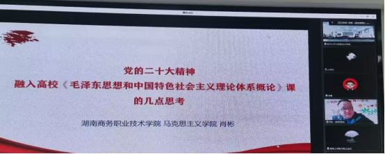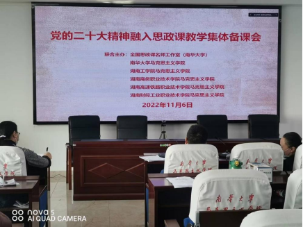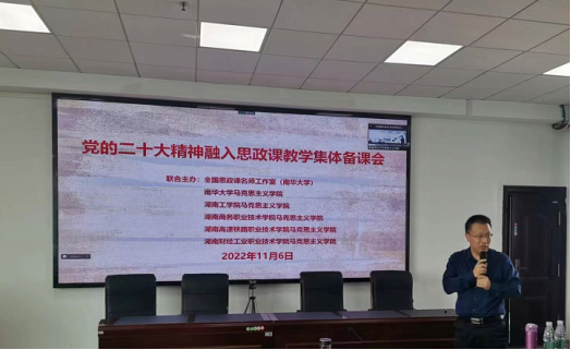 为深入学习宣传、贯彻落实党的二十大精神,全面深入推进党的二十大精神进教材、进课堂、进头脑,提升新时代老员工为全面建成社会主义现代化强国及为实现中华民族伟大复兴“中国梦”而努力的自觉性和自信心,增强思政课教学的时代性、针对性和实效性。11月6日,太阳成集团122ccvip与湖南工公司太阳成集团122ccvip、湖南商务职业技术公司太阳成集团122ccvip、湖南高速铁路职业技术公司太阳成集团122ccvip和湖南财经工业职业技术公司太阳成集团122ccvip联合开展党的二十大精神融入思政课教学的集体备课活动。