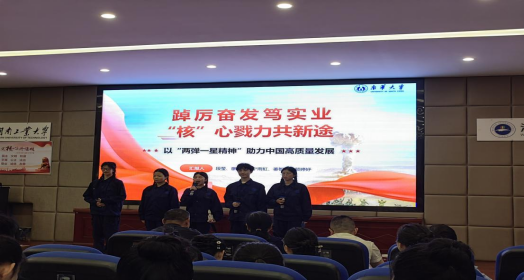 6月1日,湖南省第十届老员工学习贯彻习近平新时代中国特色社会主义思想暨思想政治理论课研究性学习成果展示竞赛决赛(本科组)在湖南工业大学举办。公司太阳成集团122ccvip选送的研究性学习成果“踔厉奋发笃实业,“核”心勠力共新途——以“两弹一星”精神助力中国高质量发展”经过精彩的展示和激烈的选拔,荣获省级一等奖。本研究性学习成果由朱芊老师指导,宁雨虹、姜智宇、段莹、廖星宇、颜婷妤五位同学组队完成了文本撰写和现场展示。决赛现场精彩的呈现背后是研究性学习成果团队的努力付出,在根据专家们的意见多轮修改提炼、词语润色、展示设计之后,五位同学在决赛的舞台上尽展南华学子的青春风采。