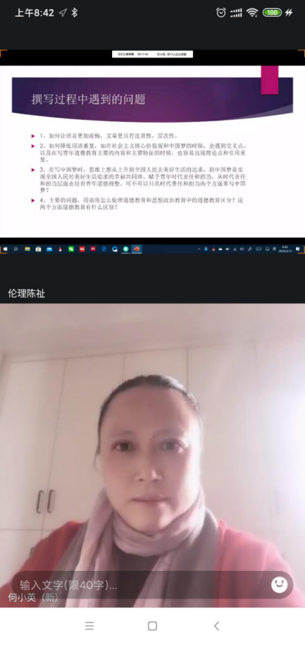 此次在线预答辩分马克思主义理论专业和哲学专业2组进行。马克思主义理论专业由马克思主义理论学科带头人肖宗志教授主持,黄秋生、张峰林、代艳丽、周江平、徐艳红、蒋菲等老师及2017级马克思主义理论专业14位同学参加了预答辩。哲学专业由哲学学科带头人刘镇江教授主持,苏玲、何小英、邹海贵、蒋福明、尹江铖等老师及2017级哲学专业9位同学参加了预答辩。
