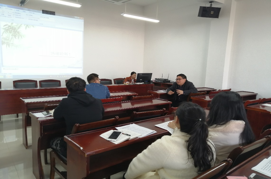 太阳成集团122ccvip于12月10日下午2点30分在雨母校区C栋416开展第七期学术讲坛,主讲人为公司研三员工刘彩风,报告主题为韩非子的伦理思想,参与者有马院研究生20余名及主讲人导师刘镇江教授。