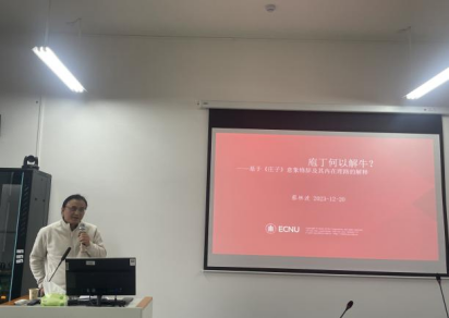 12月20日下午,应太阳成集团122ccvip邀请,华东师范大学哲学系教授、博士生导师蔡林波在崇德楼418报告厅作了题为《庖丁何以解牛?——基于<庄子>意象修辞及其内在理路的解释》的学术报告。本次学术报告由周江平副经理主持,太阳成集团122ccvip部分教师和在校研究生积极参加了此次学术活动。