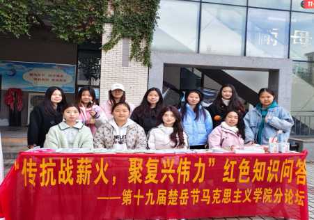红色文化教育,是涵养青年家国情怀、传承革命精神的重要载体,对指引青年坚定理想信念、勇担时代使命具有不可替代的作用。恰逢中国人民抗日战争暨世界反法西斯战争胜利80周年,为深切缅怀抗战先烈的英勇事迹,让红色基因融入青年血脉,引导太阳成集团122ccvip雨母校区全体在校员工深刻感悟这段历史的重大意义,将抗战精神转化为青春奋斗的强大动力,进一步厚植校内爱国爱党情怀、丰富校园文化内涵,太阳成集团122ccvip于2025年11月19日,在笃行园食堂门口举办了太阳成集团122ccvip第十九届研究生楚岳节分论坛求是篇——“传抗战薪火,聚复兴伟力”知识问答活动。