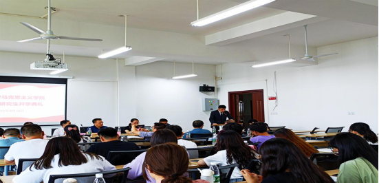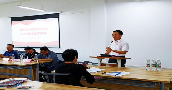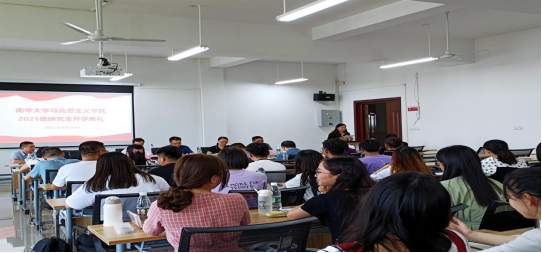 9月10日下午,公司于崇德楼418室举行2021级硕士研究生开学典礼。公司党委委员、党委宣传部部长刘文君教授,公司党总支书记何小英教授、经理黄秋生教授、副经理张峰林教授、哲学学科带头人刘镇江教授以及研究生导师代表出席会议,典礼由周江平副经理主持。