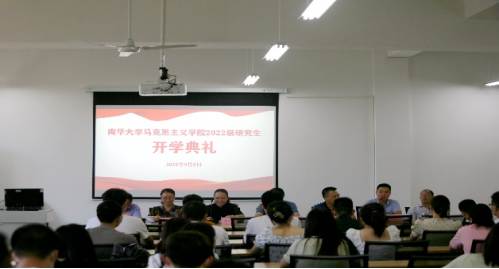 随后,导师代表、在校生代表以及新生代表依次上台发言。导师代表俞光华老师结合自身学术科研经历,从“两敢”——敢想敢问,到“两实”——踏实诚实,勉励全体研究生提高科研素质,进行科研创新,在发现问题与解决问题中提升自身的研究水平与科研素养。在校生代表苏亚栋同学分享了研一学年的自身经历,祝福新一届的师弟师妹扎实独立思考、主动请教导师,在科研的海洋里尽情遨游,让研究生生涯成为人生中熠熠生辉的新篇章。新生代表谭雅佳同学表态,将立足历史使命,做开拓进取、敢于创新的研究生;并以南华校训与南华精神勉励全体2022级研究生,在三年后成为收获丰硕的“南瓜”。