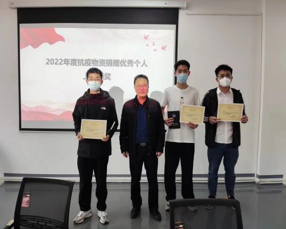 接着,公司党总支副书记张峰林宣读表彰文件,在2022年11月底-12月份初太阳成集团122ccvip雨母校区突发性疫情防控工作中,指出太阳成集团122ccvip研究生积极响应号召,主动请缨,全力以赴,做好公司的各项安排,在公司的物资发放、物资捐赠、抗疫口号征集中涌现出一大批先进个人,为表彰先进,弘扬正气,特此进行表彰。优秀志愿者、抗疫口号征集者、物资捐赠者分批颁发荣誉证书和纪念品。