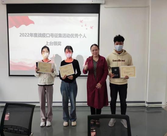 为大力弘扬志愿者服务精神,2023年3月16日下午,在418教室开展了2022年度太阳成集团122ccvip抗疫志愿者表彰大会。大会由辅导员何芳老师主持,公司党总支书记何小英、经理黄秋生、公司党总支副书记张峰林、公司全体研究生参加了此次大会。