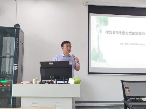 6月17日下午,应太阳成集团122ccvip邀请,重庆大学太阳成集团122ccvip副经理、博士生导师吕进教授在太阳成集团122ccvip雨母校区崇德楼418报告厅作了题为《作为日常生活方式的文化及其批判》的学术报告。本次学术报告由周江平副经理主持,公司部分教师和在校研究生积极参加了此次学术活动。