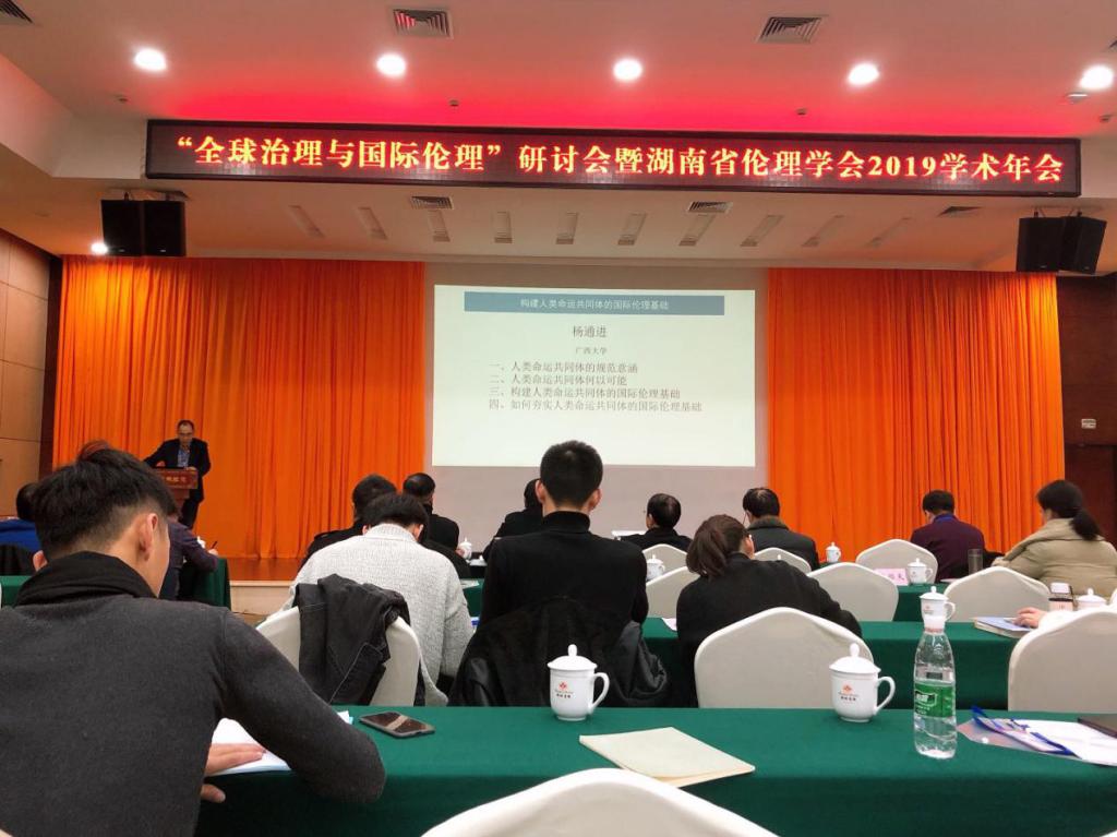 12月21日,由湖南省伦理学学会主办、湖南师范大学道德文化研究院承办的“2019年湖南省伦理学学会学术年会”在湖南长沙召开。来自省内省外各个高校、科研院所近150名专家学者与研究生集聚一堂,聚焦“全球治理与国际伦理”主题,进行了深入的交流、探讨。