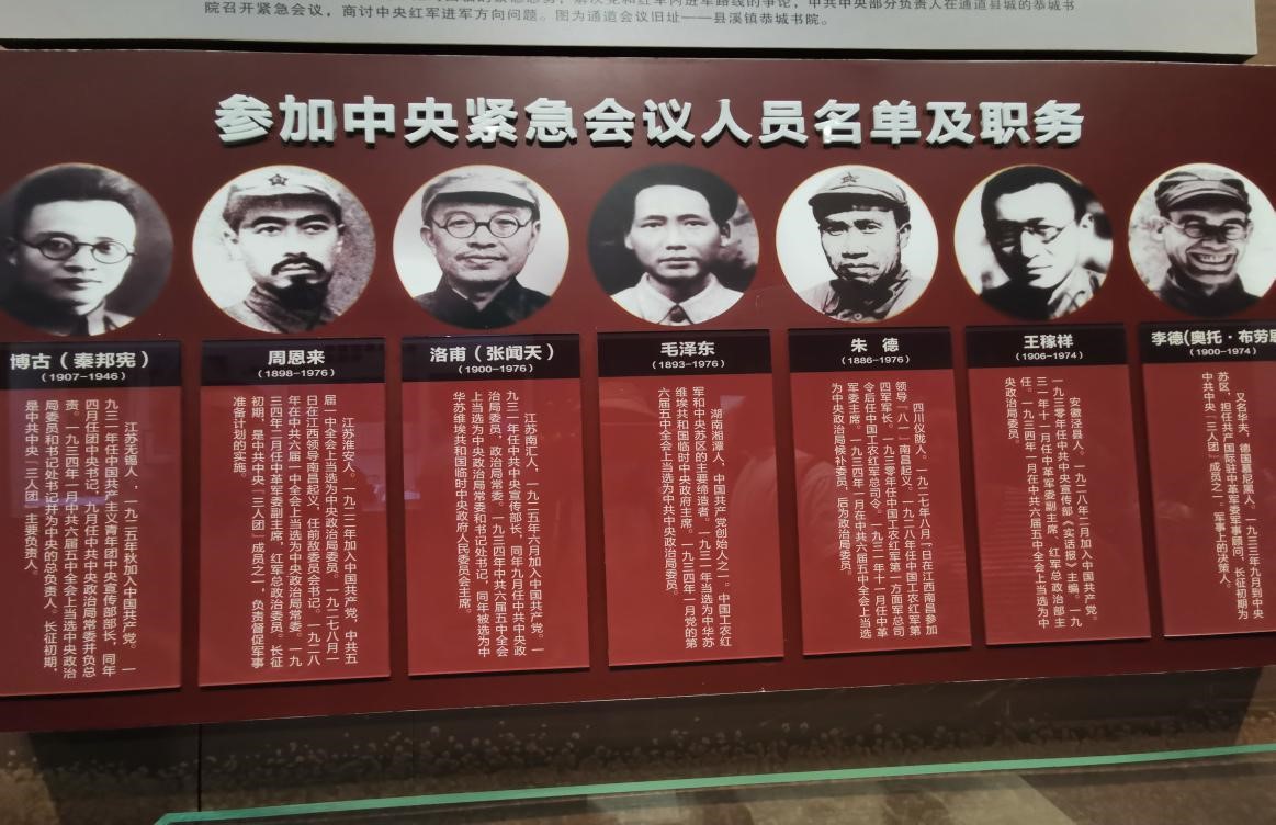 1934 年 10 月,第五次反“围剿”失败后,中央红军主力为摆脱国民党军队的包围追击,被迫离开江西瑞金实行战略转移,开始了艰苦卓绝的长征。经过一个多月的颠沛流离和艰苦转战,突围的中央红军途经福建、广东、湖南、广西,跨越敌军的层层封锁线,付出了巨大的代价。1934年11月27日至12月1日,中央红军在湘江上游广西境内的兴安、全州、灌阳,与国民党军苦战五昼夜,最终从全州兴安之间强渡湘江,突破了国民党军的第四道封锁线,掩护了中央纵队渡过湘江,粉碎了蒋介石围歼中央红军于湘江以东的企图。为此,中央红军付出了极为惨重的代价 部队指战员和中央机关人员由长征出发时的 8.6 万人锐减到 3 万余人。即使付出了惨痛的代价,红军依然没有停止长征的脚步。 1934 年 12 月 12 日,中央红军长征途经通道时,中共中央负责人在恭城书院召开紧急会议(史称通道会议)。参加会议的有博古、周恩来、李德、朱德、张闻天、王稼祥和毛泽东,会议由周恩来主持。会议围绕红军前进方向展开激烈争论。博古、李德顽固坚持按照原定计划北上湘西会合红二、红六军团。毛泽东则坚决主张改变原定计划,改向敌人力量薄弱的贵州前进。最后,毛泽东的正确主张得到了与会多数同志的赞同。通道会议促成的通道转兵于万分危急关头挽救了红军、挽救了党,为遵义会议的胜利召开奠定了思想和组织基础,是红军长征伟大转折的开端。