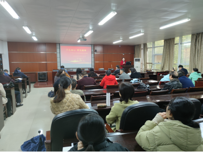 2021年11月22日上午在红湘校区新二教A201室,公司党总支书记何小英为公司全体教职工作党的十九届六中全会精神宣讲报告。