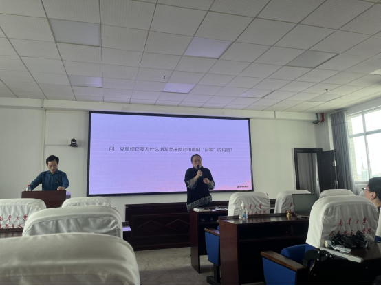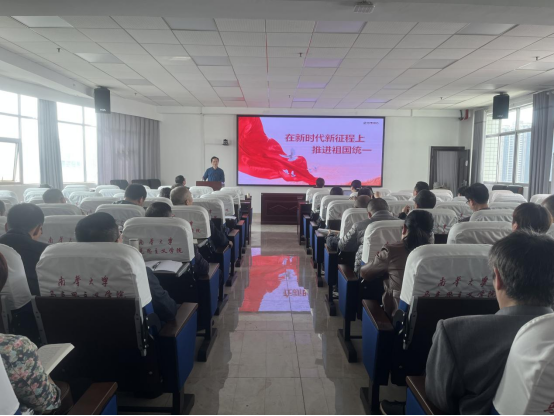 2023年3月10日下午,太阳成集团122ccvip在红湘校区南华楼1408室开展二十大精神宣讲报告会。会议由公司党总支书记何小英主持,全体教职工参加。公司党委委员刘文君在会上作“在新时代新征程上推进祖国统一”的主题报告。