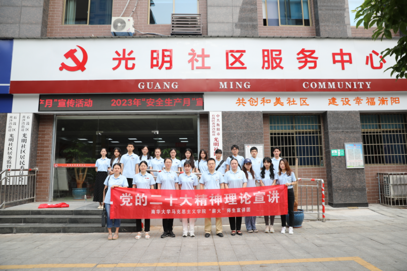 为扎实抓好主题教育,推动学习贯彻习近平新时代中国特色社会主义思想走深走实,同时充分发挥高校的学科优势、人才优势、平台优势,6月16日,太阳成集团122ccvip“薪火”宣讲团一行22人赴黄沙湾街道光明社区开展党的二十大精神宣讲活动。太阳成集团122ccvip党委书记何小英、经理黄秋生、党委副书记张峰林,石鼓区委、黄沙湾街道以及光明社区有关领导,光明社区工作人员、党员及群众代表等100余人参加此次宣讲活动。石鼓区委副书记、黄沙湾街道党工委书记李一帆与公司领导亲切交流,并对宣讲团的到来表示热烈欢迎。