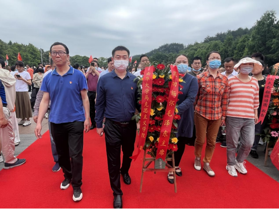 庄严肃穆的毛泽东铜像广场松柏苍翠,参加活动的师生党员在公司党总支书记何小英、副书记张峰林、副经理周江平的带领下,怀着无比崇敬的心情向毛泽东铜像敬献花篮,接着一起整齐列队向毛泽东铜像行三鞠躬礼,缓步绕行铜像一周,深切缅怀领袖毛泽东同志的丰功伟绩,学习伟人胸怀人民的崇高风范,廉洁无私的奉献精神。