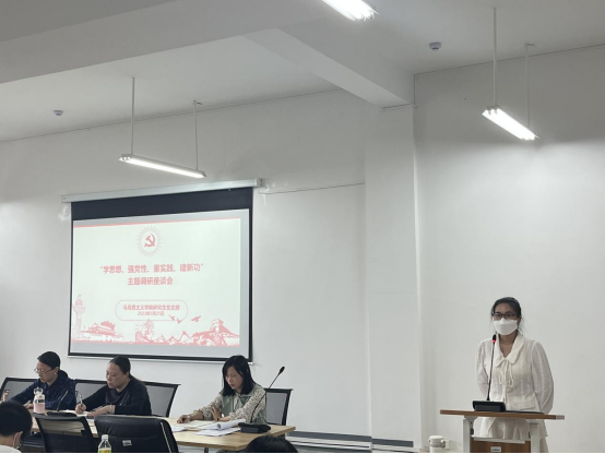 接着,公司党委书记何小英就公司党员发展工作中出现的重点问题对全体研究生入党积极分子、发展对象、预备党员和党员提出了要求。她指出,作为入党积极分子和发展对象首先就要端正入党动机,对待党务要有应当的严肃性和正规性。针对入党积极分子培训和考核过程中出现的问题,她再次强调了党的组织纪律的重要性,希望大家认清问题本质,端正思想认识。同时,她希望研究生党员同志要在自身学习、公司工作和日常行为上真正发挥党员的先锋模范作用,践行自己的入党誓词。研究生党支部书记董丽琼表示,本次主题调研座谈会的目的就是发现问题、提出问题并解决问题,希望同学们积极发言,为推动公司各项工作发展多提宝贵意见和建议。