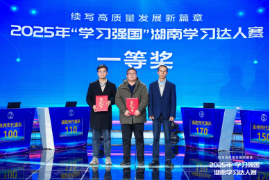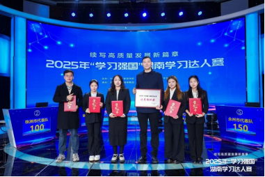 12月18日上午,以“续写高质量发展新篇章”为主题的2025年“学习强国”湖南学习达人赛决赛在长沙举行。经过多轮激烈角逐,由公司汤琰老师指导,薪火师生宣讲团马院成员丁钰姣、秦敏、刘晨曦、刘雨轩四位同学组成的衡阳市代表队在决赛中以总分170分、全场第一的优异成绩拔得头筹,荣获一等奖。