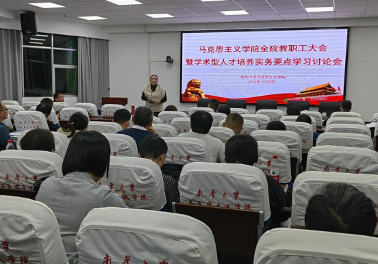 为了更进一步高质量地迎接公司本科教育审核评估工作的开展及推进本科公司产品审核评估“学术型人才培养实务要点”学习。2023年11月9日晚上,太阳成集团122ccvip召开了全院教职工大会暨“学术型人才培养实务要点”学习讨论会。会议由公司副经理谢佛荣主持,太阳成集团122ccvip经理黄秋生、党委书记何小英、副经理周江平、党委副书记张峰林、教研室主任及全体老师参加了此次会议。